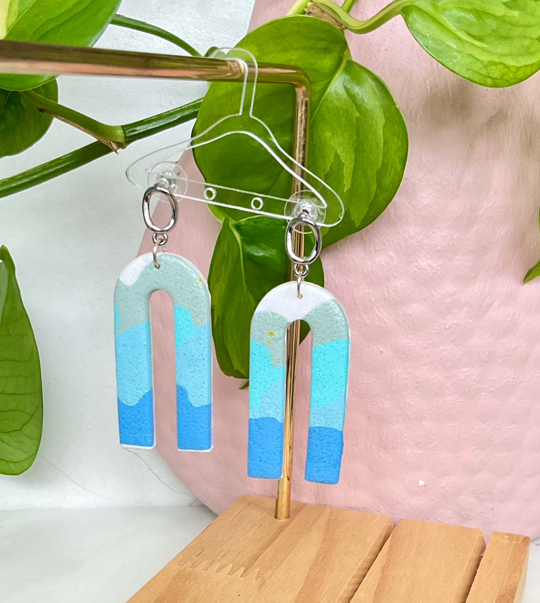 Handmade polymer clay earrings in Multiple Colors with metal detail. The hardware is stainless steel.